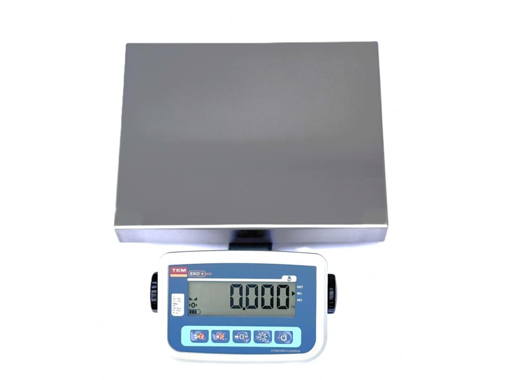 Technologická plošinová váha TEM je vhodná pro přesné vážení všech výrobků do hmotnosti 15 kg. Ocelová konstrukce váhy je extrémně stabilní.